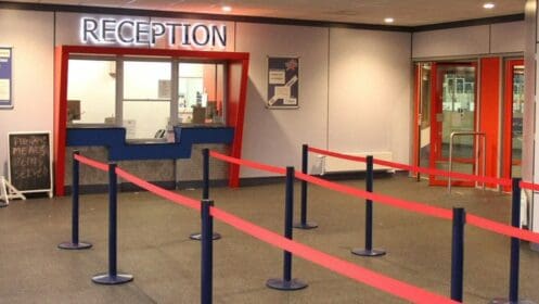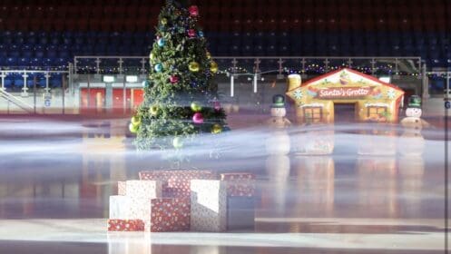 Dundee Ice Arena is a versatile sports and events venue in Dundee, Scotland, built in 2000 and located at the Camperdown Leisure Complex. It features an Olympic-size rink with seating for 2,300 spectators and hosts public skating, ice hockey and curling. The facility also includes hospitality rooms, a cafe, a bar, and a shop.
